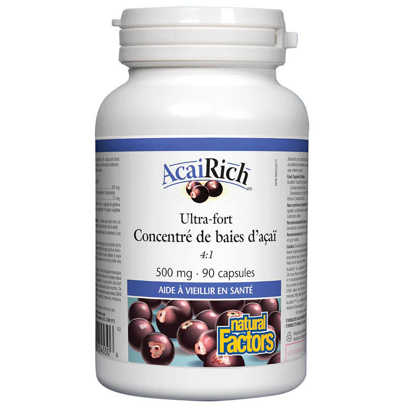 Le concentré de baies d’açai ultra-fort AcaiRich procure une forte dose de composés antioxydants puissants. Ils sont réputés pour leur capacité de lutter contre les dommages causés par les radicaux libres. Ils favorisent donc un vieillissement en santé.