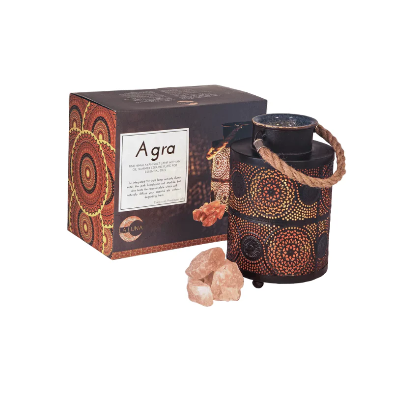 La lampe en cristaux de sel rose de l’Himalaya Agra allie l’aromathérapie à une source de lumière pure et naturelle. Une fois allumée, elle réchauffe et diffuse lentement vote huile essentielle préférée. Proposé par La Luna. Fournie avec des cristaux de sel de l’Himalaya 100% pur et naturel (1.5 kg) et une plaque en céramique chauffante pour huiles essentielles.