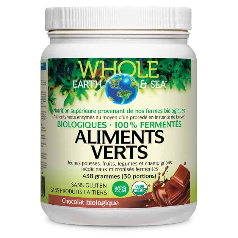Aliments verts biologiques fermentés est une préparation de superaliments fermentés à 100 % et certifiés biologiques. Elle procure 6 g de protéines végétales les plus pures qui soient par portion. Cette préparation exceptionnelle de superaliments exploite la puissance de la fermentation naturelle. Elle peut ainsi fournir une grande variété de nutriments ainsi que de protéines à haute biodisponibilité. Elle contient un mélange biologique d’herbes, de fruits et de légumes cultivés dans nos fermes de la vallée de l’Okanagan, en Colombie-Britannique. La préparation contient aussi un mélange de champignons médicinaux micronisés, connus pour leur action tonique. Les scientifiques ont constaté que la fermentation, une méthode traditionnelle de conservation des aliments, peut améliorer la biodisponibilité des nutriments fournis par les aliments. C’est ce qui assure une « prédigestion » efficace en décomposant les matières végétales qui, autrement, ne seraient pas digestibles. Par conséquent, toute la valeur nutritionnelle est libérée, ce qui facilite la digestion.
