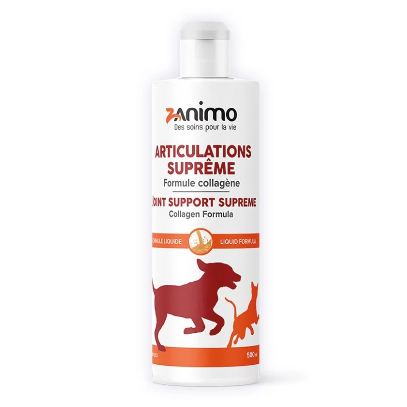 Suprême avec collagène contribue à la mobilité et à la souplesse des hanches, des articulations et des ligaments. Elle supporte la santé du cartilage et des os, favorise la flexibilité et maintient le confort articulaire. Cette recette unique est l’une des meilleures options à donner à son animal qui souffre de douleurs articulaires et de raideurs au lever. Elle contient une synergie de 6 ingrédients actifs et efficaces qui ont démontré des résultats visibles en 10 jours.