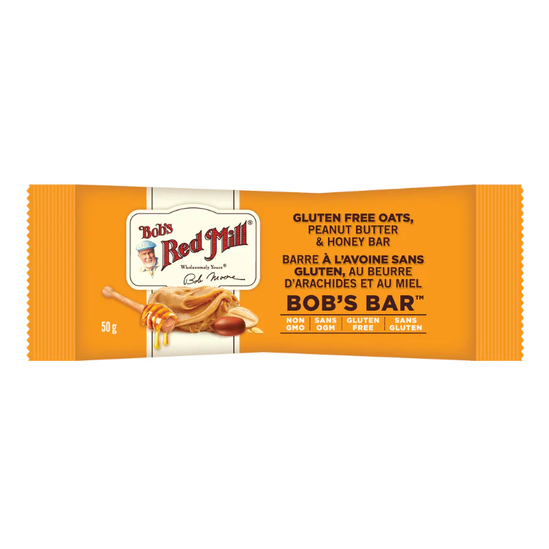 Notre barre Bob’s au beurre d’arachides, au miel et à l’avoine sans gluten est un pur délice! Fabriquées avec seulement six ingrédients sains, dont de l’avoine à grains entiers, du beurre d’arachide et du miel biologique.