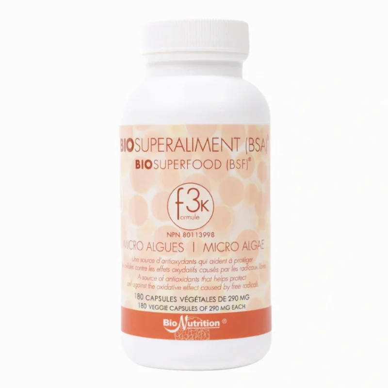 Les formules BIOSUPERALIMENT (BSA) sont des produits naturels et entiers qui contiennent quatre micro-algues – des plus nutritives et des plus denses en phytonutriments :