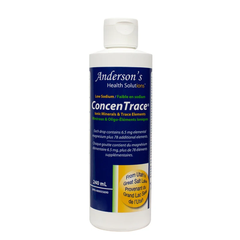 Anderson’s ConcenTrace de la famille Anderson – Les premiers récolteurs de minéraux de qualité supplément du Grand Lac Salé de l’Utah depuis 1969 sont le premier supplément de minéraux et d’oligo-éléments. Le ConcenTrace d’Anderson est supérieur de trois manières : 1) Il est entièrement compatible avec la nutrition humaine, ce qui signifie qu’il est pur et équilibré. 2) Il est ionique pour une biodisponibilité à 100%, 3) et il est à concentration maximale pour la valeur la plus élevée. ConcenTrace convient aux régimes végétariens, végétaliens, céto, sans gluten, casher et halal.