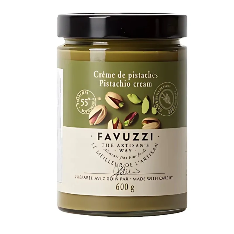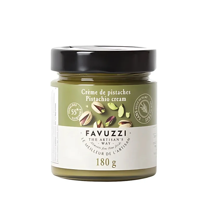 D’une jolie teinte vert pâle, cette crème à la texture riche est sucrée à souhait et offre un goût intense de pistache.