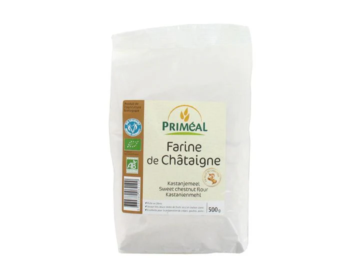 La Farine de Châtaigne Priméal Biologique et sans gluten est excellente pour la préparation des crêpes, des gaufres, du pain …