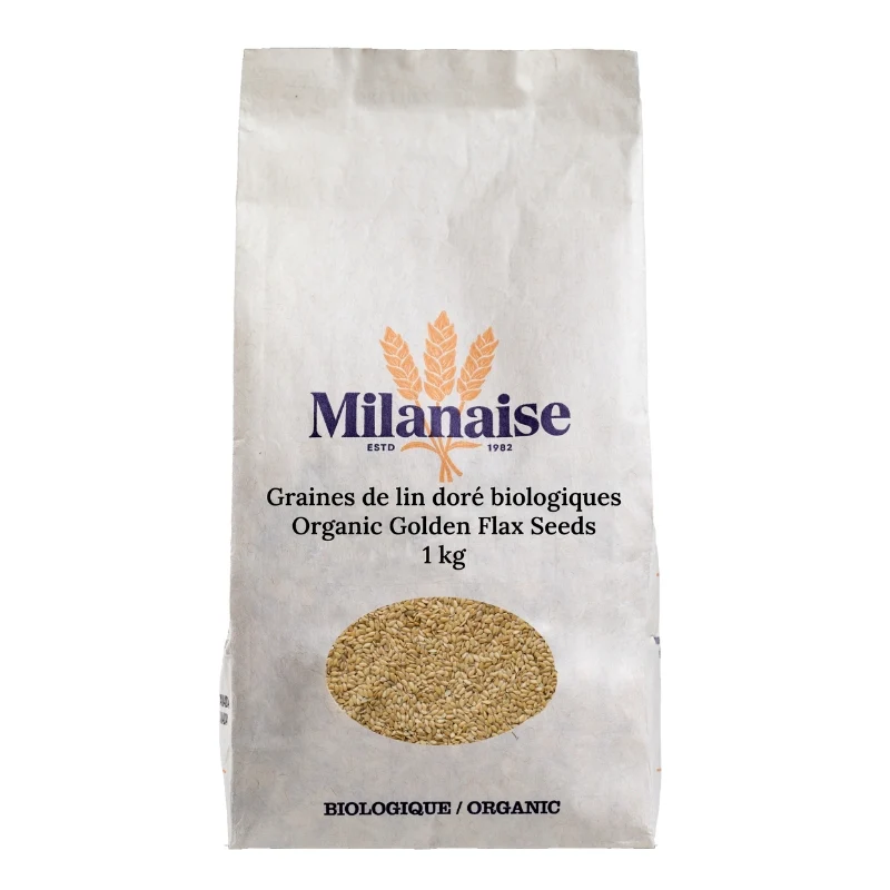 Lin doré biologique. Peut contenir du blé (gluten). Produit du Canada.