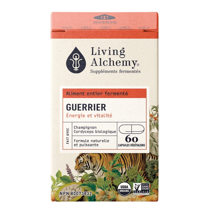 Notre supplément Guerrier est un puissant mélange fermenté d’aliments entiers biologiques riches en nutriments, notamment le baobab, la maca et le curcuma.