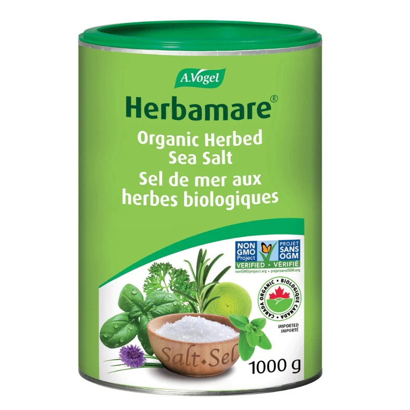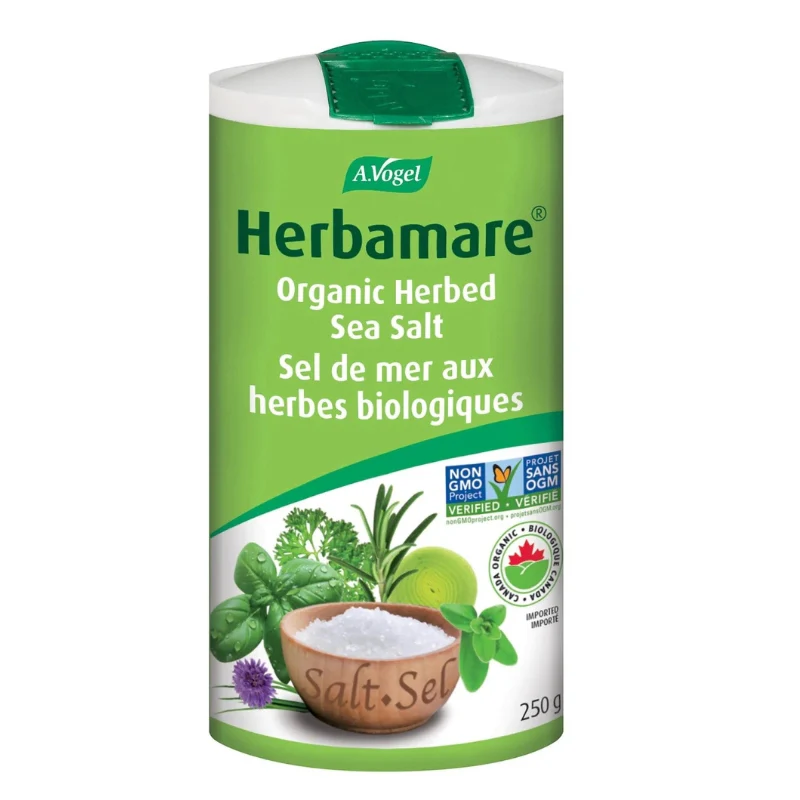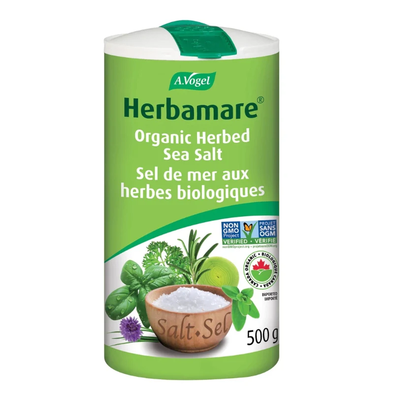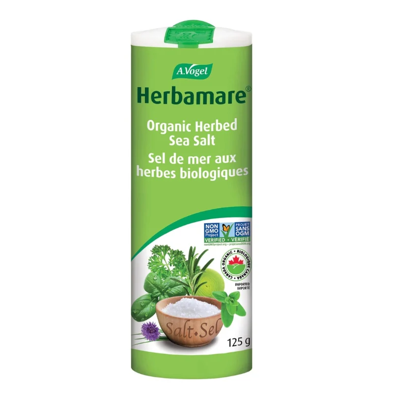 Le sel de mer aux herbes biologiques remplace à merveille le sel de table. Ce mélange unique se sel de mer, légumes et fines herbes ravivera vos recettes! Le secret d’Herbamare® réside dans son mélange savamment obtenu du sel de mer infusé de 12 légumes et herbes de culture biologique fraîchement récoltés. Son bouquet unique ravive la saveur de tous les plats. Utilisez-le pour remplacer le sel de table pour assaisonner les légumes, viandes, volailles, poissons et fruits de mer.