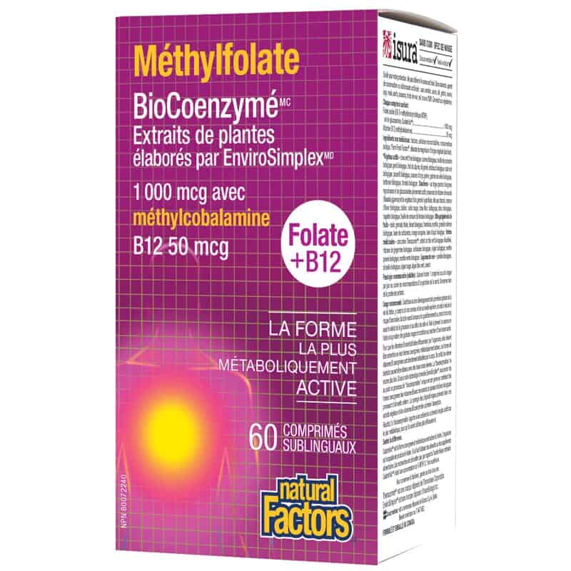 Méthylfolate BioCoenzymé avec méthylcobalamine B12 de Natural Factors représente la nouvelle génération de suppléments nutritionnels, fournissant des formes bioactives de deux vitamines B essentielles. Cette préparation à prendre une fois par jour contient des formes coenzymées de folate et de vitamine B12, deux nutriments indispensables. Ils sont nécessaires au développement initial normal du fœtus, au métabolisme énergétique, à la production de globules rouges et au maintien de la santé de l’appareil cardiovasculaire et des fonctions cognitives. Cette préparation biocoenzymée unique fait appel au procédé exclusif EnviroSimplexMD, alliant le concentré Farm Fresh FactorsMC, un mélange d’aliments complets biologiques constitué de légumes terrestres et marins, et la forme coenzymée des vitamines B. Il en résulte une préparation phytochimique synergique qui apporte aux cellules les nutriments les plus métaboliquement actifs. Méthylfolate BioCoenzymé de Natural Factors est exempt de gluten et d’ingrédients génétiquement modifiés. Il convient aux végétariens et se présente sous la forme de comprimés sublinguaux : pas besoin d’avaler des pilules !