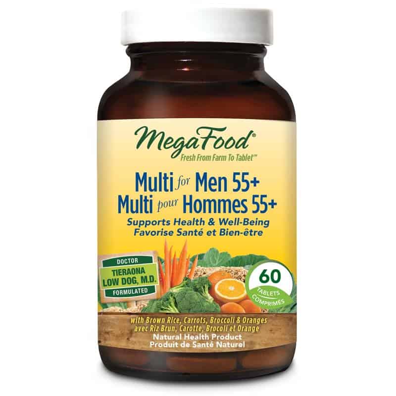 Multi pour Hommes de 55 ans et plus est spécialement conçu pour les hommes de plus de 55 ans qui recherchent un multi sans fer, sans iode ni vitamine K et qui soutient leur santé optimale et leur bien-être. Multi pour Hommes de 55 ans et plus est conçu avec une foule de substances nutritives de soutien FoodState*, y compris 1 000 UI (25 mcg) de vitamine D pour soutenir des os déjà en bonne santé, de la choline pour une santé mémoire et fonction cognitive, de l’extrait de graines de citrouille et de thé vert et du zinc pour une fonction prostatique saine.