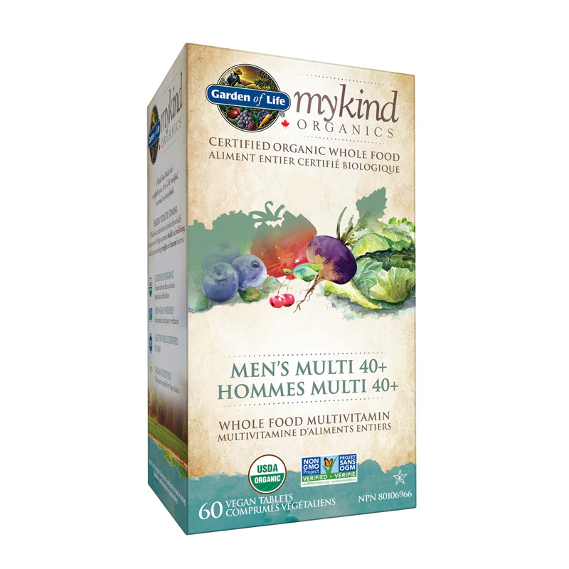 La multivitamine biologique Mykind Organics Hommes Multi 40+ de Garden of Life est conçu à base d’aliments entiers et a été développée spécifiquement pour les hommes de 40 ans et +. Elle aide à promouvoir la santé et le bien-être. De plus, elle soutient l’énergie, le métabolisme et la fonction immunitaire. Fournit des doses généreuses de sélénium pour la santé de la prostate et sans ajout de fer.