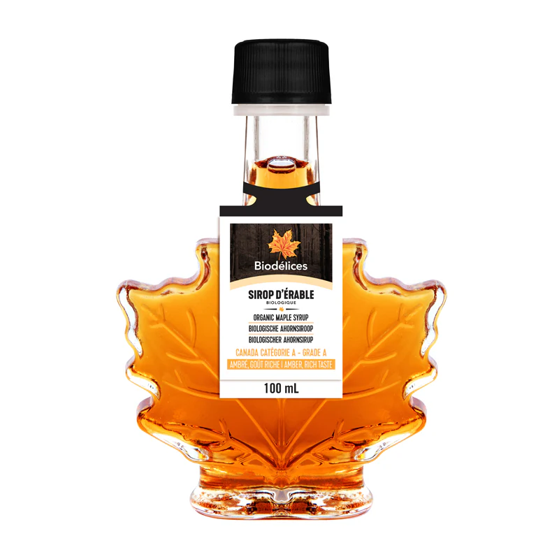 Sirop d’érable 100% pur et biologique, grade A. Idéal pour accompagner vos crêpes, pancakes et gaufres. Bouteille en verre 250 ml Le sirop d’érable Bio délices accompagne parfaitement vos crêpes, gaufres, pancakes…ou encore dans des recettes salées.