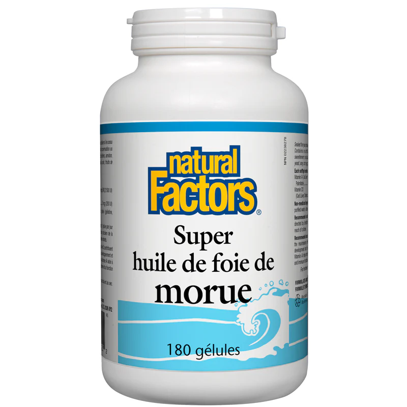 Super huile de foie de morue de Natural Factors est une riche source de vitamines A et D qui favorise le maintien d’une bonne santé ainsi que le développement et l’entretien des os et des dents. En dose pratique d’une gélule par jour, ce produit contribue à l’entretien de la vue, de la peau, des membranes et de la fonction immunitaire.
