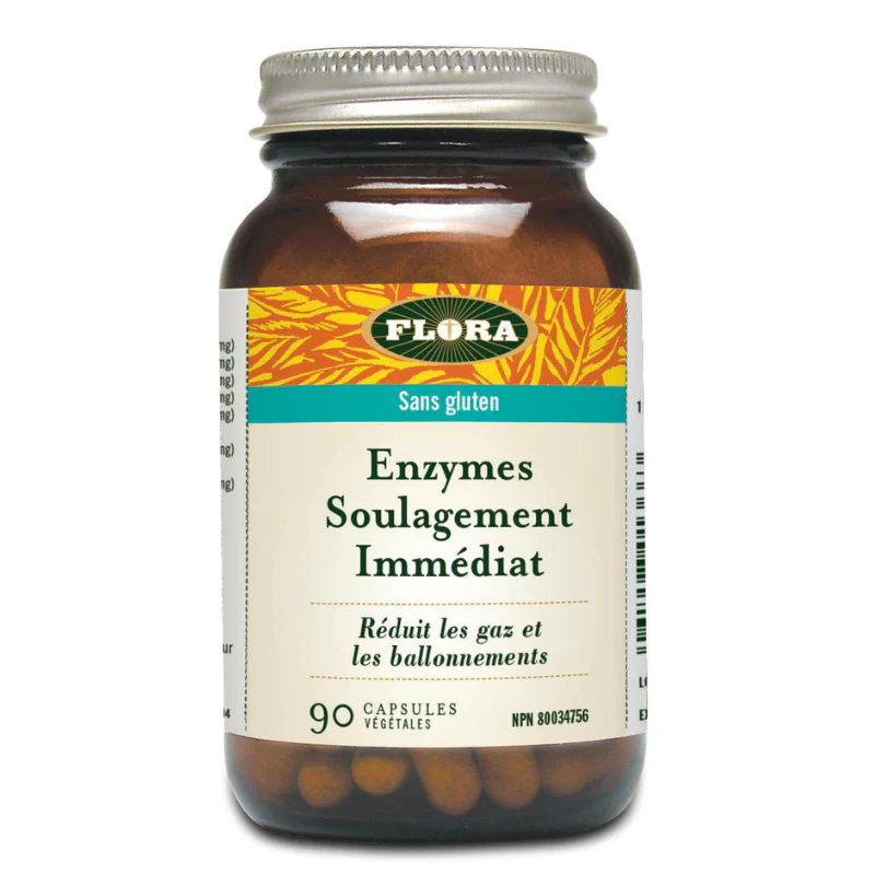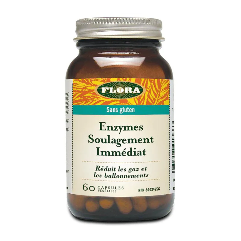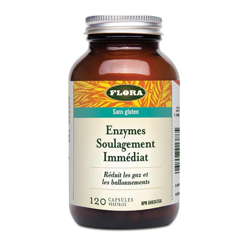 UDO’s Choice Les Enzymes Soulagement immédiat aident à réduire les gaz et les ballonnements. Les enzymes digestifs sont des catalyseurs qui permettent à l’organisme de décomposer les lipides, les glucides, les protéines, les sucres et les fibres. La production d’enzymes naturels du corps diminue avec le stress, la consommation de caféine et d’alcool, la maladie, la grossesse et le vieillissement. Le mélange Soulagement immédiat est spécialement formulé pour faciliter la digestion de l’amidon et pour les personnes qui ont une intolérance aux produits laitiers ou de la difficulté à digérer les haricots et autres légumineuses. De plus, il est idéal pour celles qui ont une alimentation plutôt végétarienne.