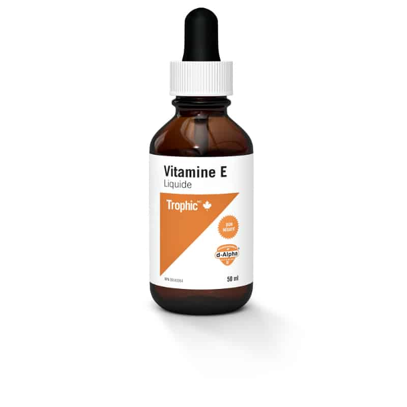La vitamine E est un antioxydant qui aide à préserver une bonne santé. Dans la nature, la vitamine E est un complexe de composés que l’on appelle tocophérols. Le plus actif d’entre eux est le d-alpha tocophérol. La vitamine E est essentielle au bon fonctionnement des systèmes circulatoire, nerveux, digestif, excrétoire et respiratoire, car elle maintient l’intégrité des membranes cellulaires. Elle aide à estomper les cicatrices et favorise la guérison des plaies. La vitamine E liquide de Trophic peut être utilisée de façon interne comme supplément alimentaire, ou de façon externe, comme revitalisant pour la peau et comme agent cicatrisant pour les coupures, brûlures et lésions.
