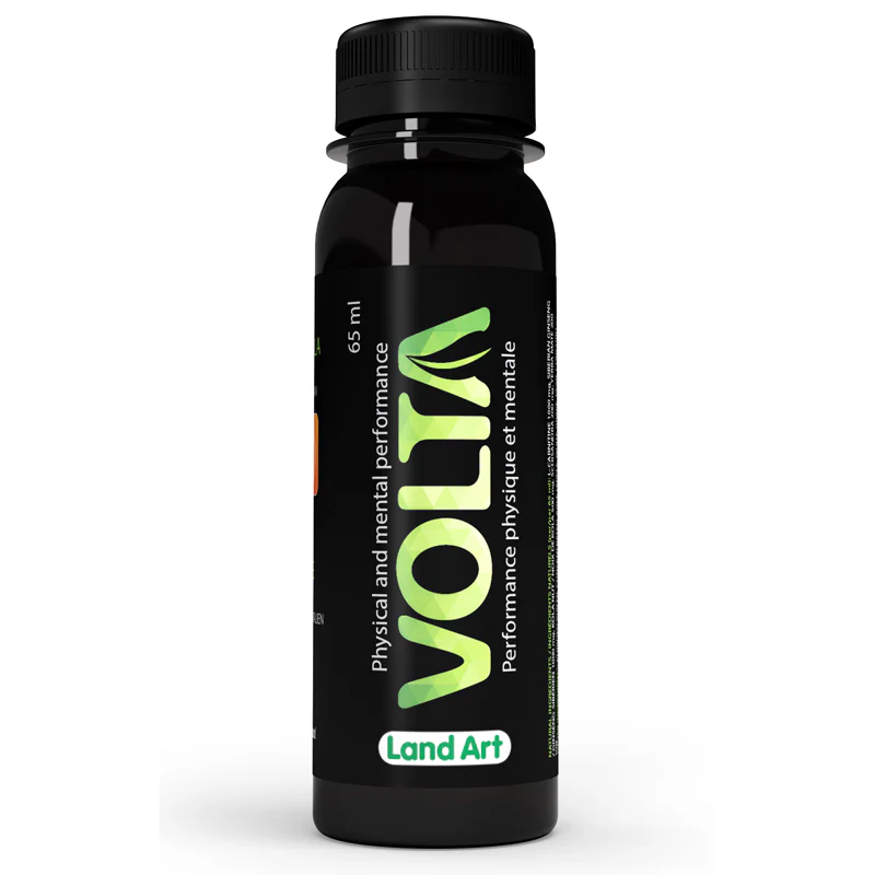 Le Volta de Land Art est une boisson énergétique naturelle à 100% avec seulement 25 mg de caféine naturelle par bouteille.