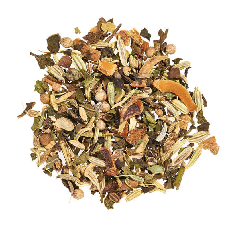 Composition : fenouil bio, anis vert bio, badiane bio, coriandre bio, mélisse bio, cardamome bio.