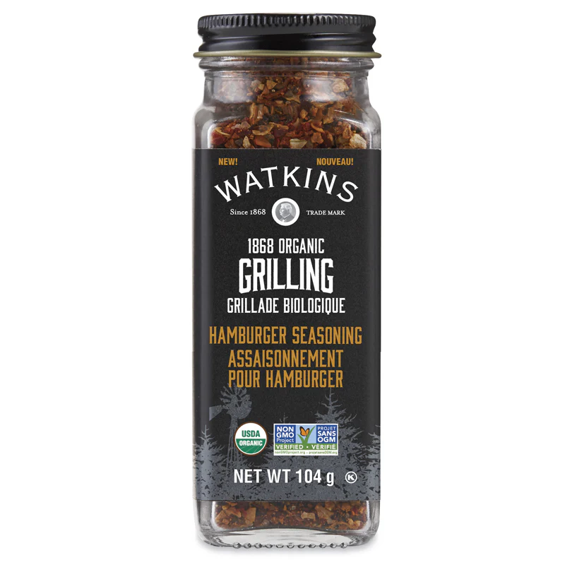 The Watkins Co. apporte les assaisonnements authentiques du Grand Nord à votre cuisine ou à votre grill, tout comme nous le faisons depuis plus de 150 ans. Les assaisonnements pour grillades de hamburgers biologiques sont une saveur que toute la famille peut apprécier avec du sel, de l’oignon grillé, de l’ail, du poivron rouge et du paprika fumé. Utilisez 1 c. pour assaisonner 1 livre de viande. Si désiré, frotter l’huile de cuisson sur la viande avant de l’assaisonner.