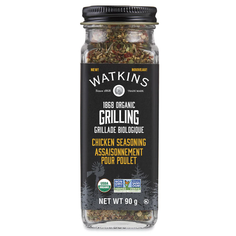 The Watkins Co. apporte les assaisonnements authentiques du Grand Nord à votre cuisine ou à votre grill, tout comme nous le faisons depuis plus de 150 ans. Le sel savoureux, l’oignon, l’ail, le poivre, le citron et plus encore font ressortir le meilleur du poulet grillé dans cet assaisonnement pour grillades de poulet biologique. Utilisez 1 c. pour assaisonner 1 livre de viande. Si désiré, frotter l’huile de cuisson sur la viande avant de l’assaisonner.