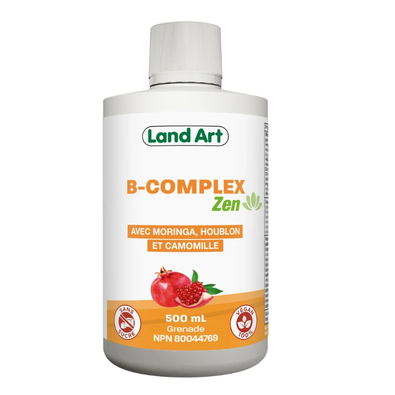 Le B-Complex Zen regroupe tous les bienfaits d’un complexe équilibré de vitamine B. Spécialement adapté et additionné de houblon, de camomille et de moringa, reconnus pour aider à soulager le stress. Il aide l’organisme à métaboliser les lipides, les glucides et les protéines pour le maintien d’une bonne santé. Les vitamines du groupe B sont indispensables et complémentaires. Il est donc important d’avoir une formule complète. Unique par sa forme liquide et ses concentrations optimales, le B-Complex Zen de Land Art est plus efficace et mieux assimilé que la plupart des autres marques.