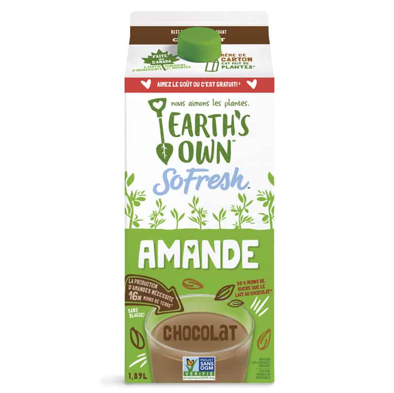 Comment rendre le la*t d’amande le plus savoureux au Canada encore meilleur? Eh bien, il suffit d’ajouter du cacao onctueux à notre boisson écologique, qui a besoin de 16x moins de terres et de 2x moins d’eau que les produits laitiers pour arriver dans votre tasse. Et en plus, nous avons modifié la recette de notre gamme de longue conservation! Vous pourrez donc en profiter où que vous soyez!