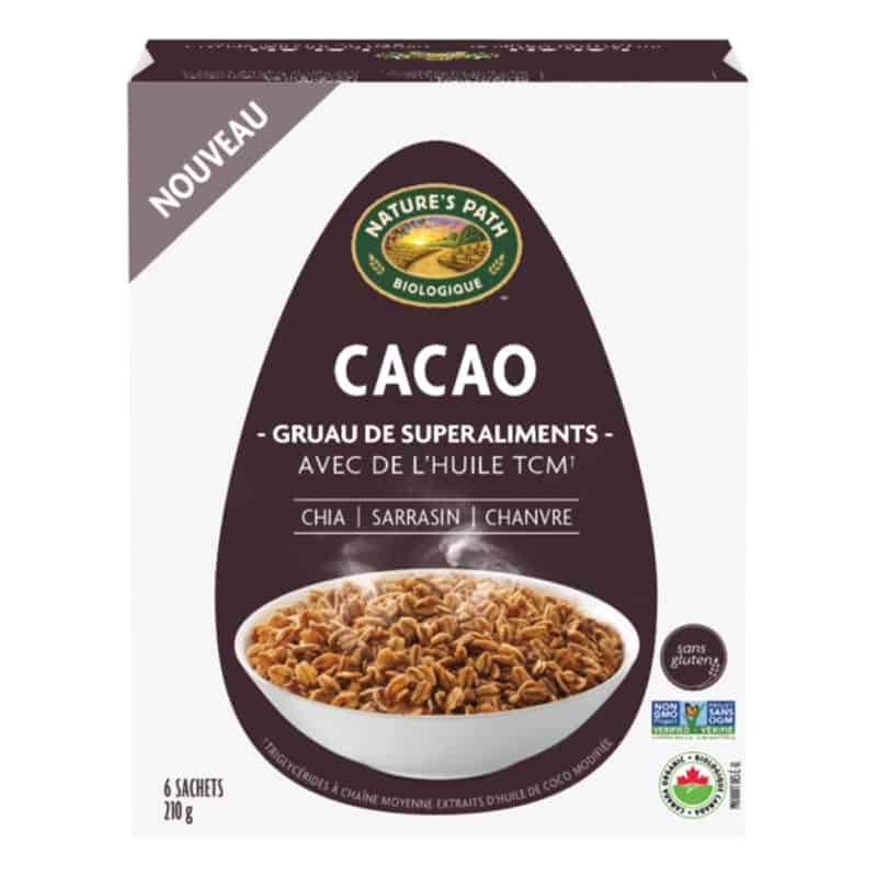 Un mélange réconfortant d’avoine crémeuse et de cacao avec de l’huile de triglycérides à chaîne moyenne (TCM). Rehaussé d’un mélange de superaliments pour faire le plein d’énergie pour la journée!
