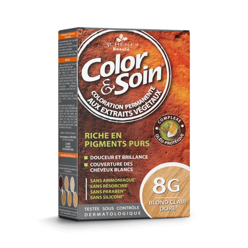 Enrichie en pigments purs, la collection Color & Soin des 3 Chênes propose des colorations permanentes aux extraits végétaux qui prennent soin de vos cheveux. Sans ammoniaque, sans résorcine, sans parabène, sans silicone.