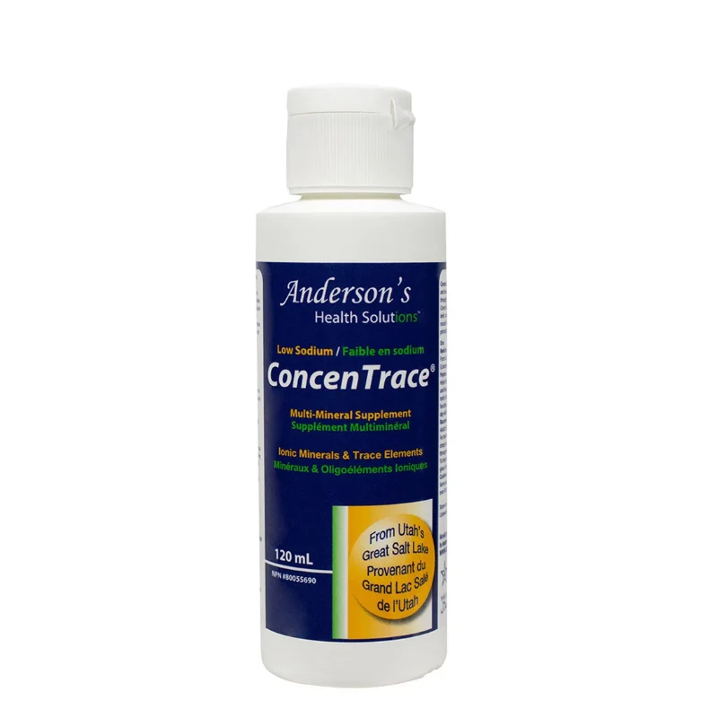 Anderson’s ConcenTrace de la famille Anderson – Les premiers récolteurs de minéraux de qualité supplément du Grand Lac Salé de l’Utah depuis 1969 sont le premier supplément de minéraux et d’oligo-éléments. Le ConcenTrace d’Anderson est supérieur de trois manières : 1) Il est entièrement compatible avec la nutrition humaine, ce qui signifie qu’il est pur et équilibré. 2) Il est ionique pour une biodisponibilité à 100%, 3) et il est à concentration maximale pour la valeur la plus élevée. ConcenTrace convient aux régimes végétariens, végétaliens, céto, sans gluten, casher et halal.