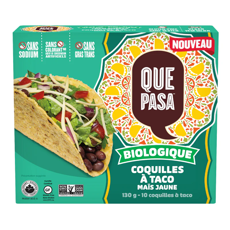 La soirée tacos n’aura jamais été aussi simple et savoureuse! Dites holà à une saveur véritablement mexicaine. Découvrez nos authentiques coquilles à taco biologiques Que Pasa faciles à préparer.