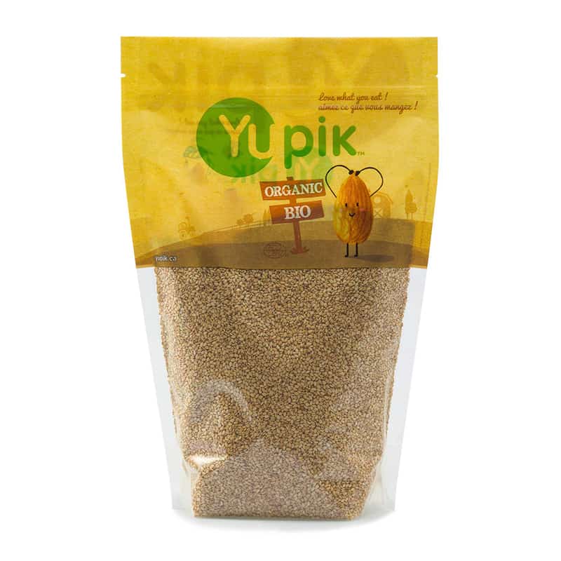 Les graines de sésame naturelles biologiques sont peut-être petites, mais elles font BEAUCOUP! Ces délicieuses graines polyvalentes sont de toutes petites graines ayant un goût crémeux de noix et une texture croustillante et granuleuse. Les graines de sésame naturelles sont non traitées, et sont d’un beige pâle et d’un brun doré. Elles se rôtissent et se mélangent facilement, pour les incorporer aux recettes! Ayez toujours ce délicieux produit dans votre garde-manger! Préparez-vous des collations savoureuses et dégustez-les où que vous soyez : dans votre voiture, en randonnée ou même au bureau!