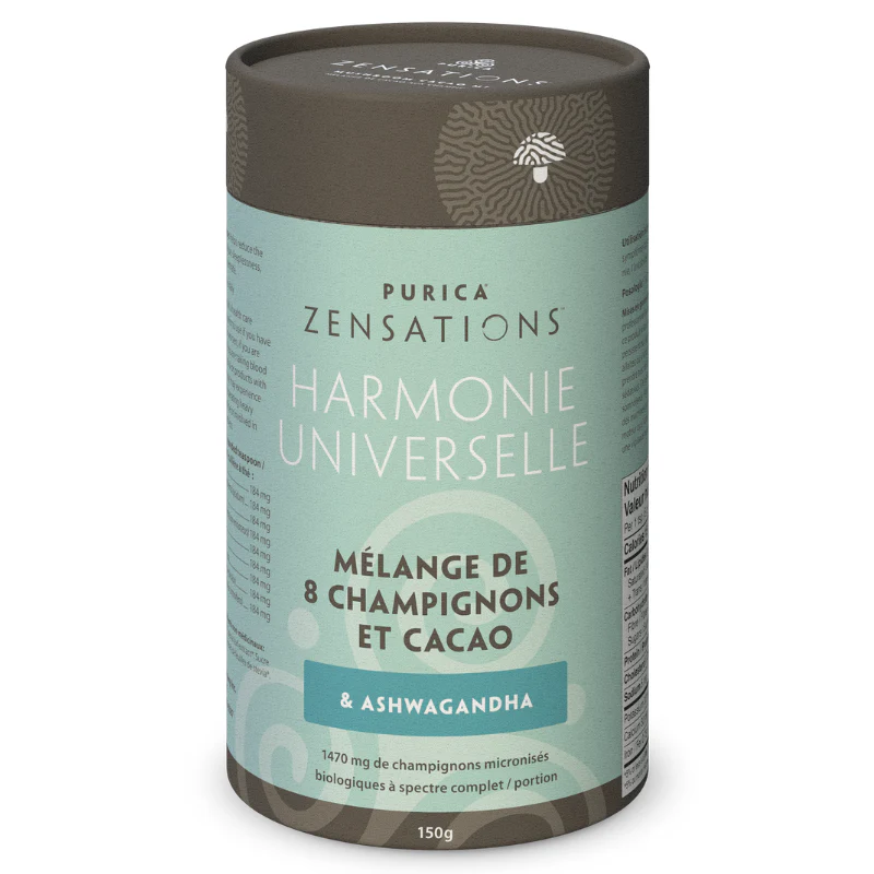 Que se passe-t-il lorsque vous mélangez la symphonie de huit champignons médicinaux et l’herbe Ashwagandha avec le goût magique du cacao ? Vous obtenez l’incroyable PURICA Zensation appelée Universal Harmony.