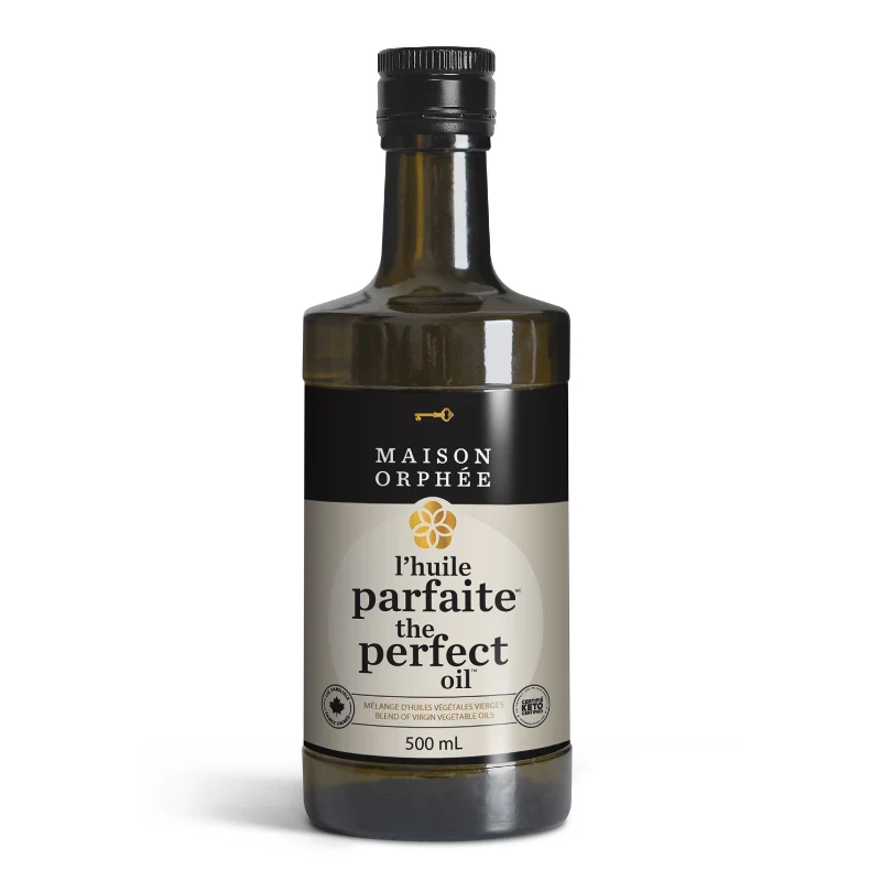 L’Huile Parfaite MC est fabriquée à Québec à partir d’huiles de graines vierges et d’olive vierge extra. Utilisez-la à la place de votre huile régulière dans vos recettes. Elle rend chaque plat plus magique grâce à sa saveur douce et beurrée et à son profil équilibré.