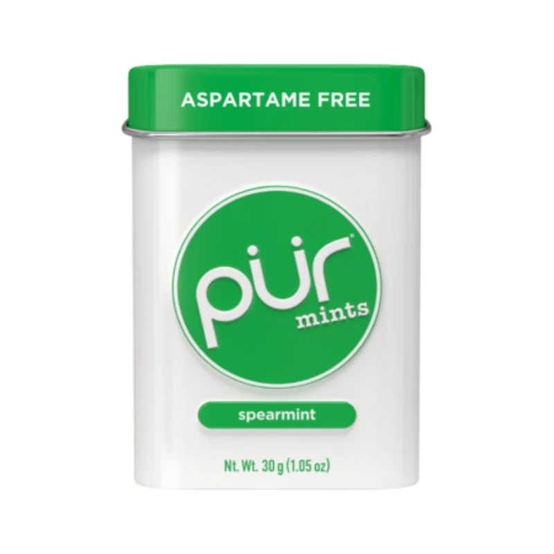 Une saveur de menthe qui laisse le souffle frais pendant des heures! Les menthes Pur à saveur de menthe verte sont sans sucre, sans allergènes, vegétalien, sans gluten et sans OGM.