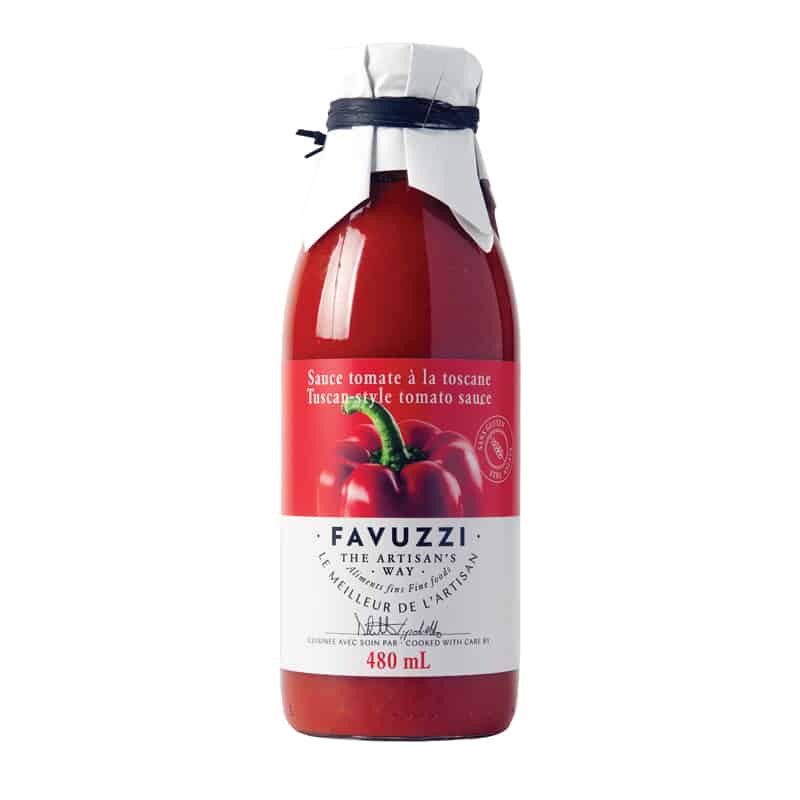 Notre sauce à la toscane est une compotée de tomates fondantes qui laisse percevoir un goût de poivron rouge caramélisé et une pointe d’ail. On pourrait la définir comme la plus « classique » des sauces italiennes, car toutes ses notes aromatiques s’harmonisent parfaitement pour répandre le goût de tomates fraîches.
