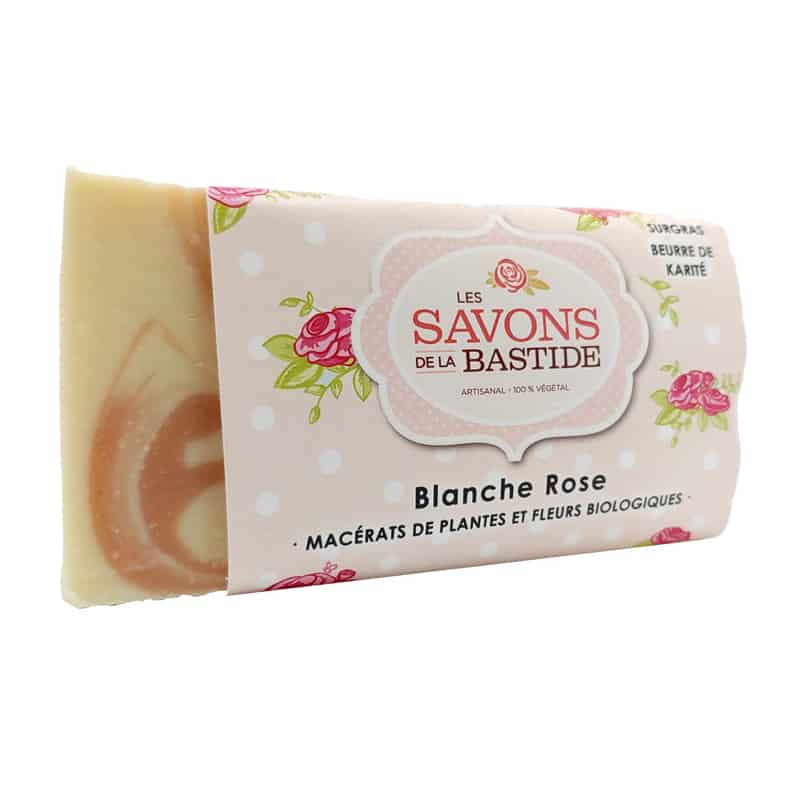 Huiles d’olive, coco et ricin biologiques, eau filtrée, hydroxyde de soude, huile d’argan, beurre de karité et huile de calendula biologiques. Huiles essentielles de lavande et de bois de ho, argile rose.