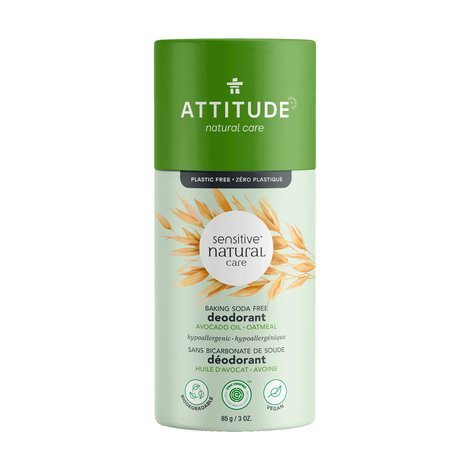 Le déodorant sans plastique pour peaux sensibles ATTITUDE est conçu pour offrir une protection longue durée et une formulation apaisante aux peaux sensibles. Ce déodorant naturel ne contient ni aluminium, ni bicarbonate de soude, ni parfum.