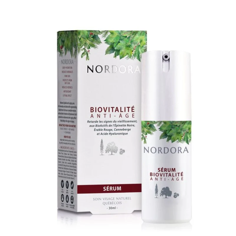 Soins anti-âge global naturel. Cette formule enrichie en BioActifs régénérants de notre nature boréale, vitamine C et acide hyaluronique offre un effet anti-âge avancé qui retarde les signes du vieillissement.
